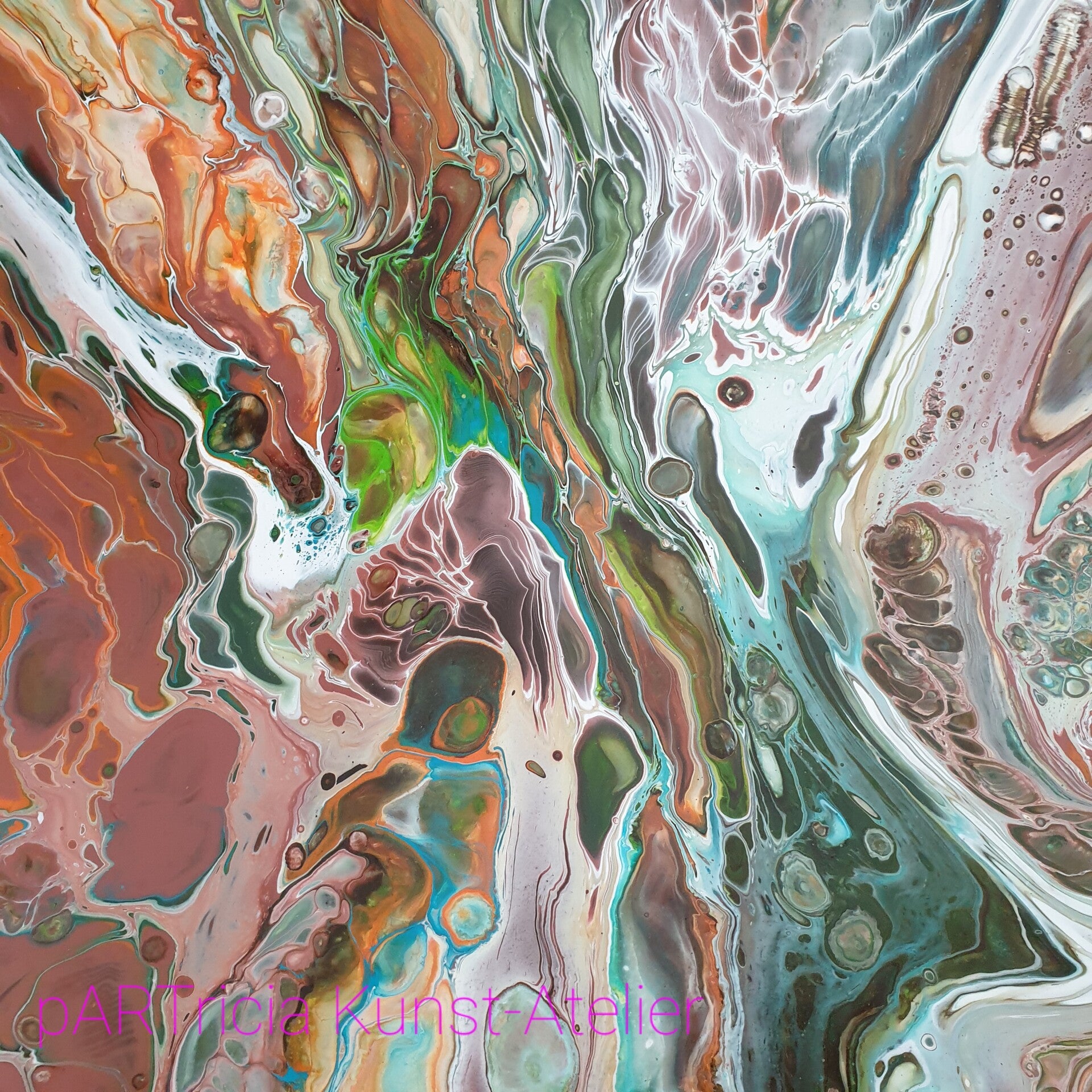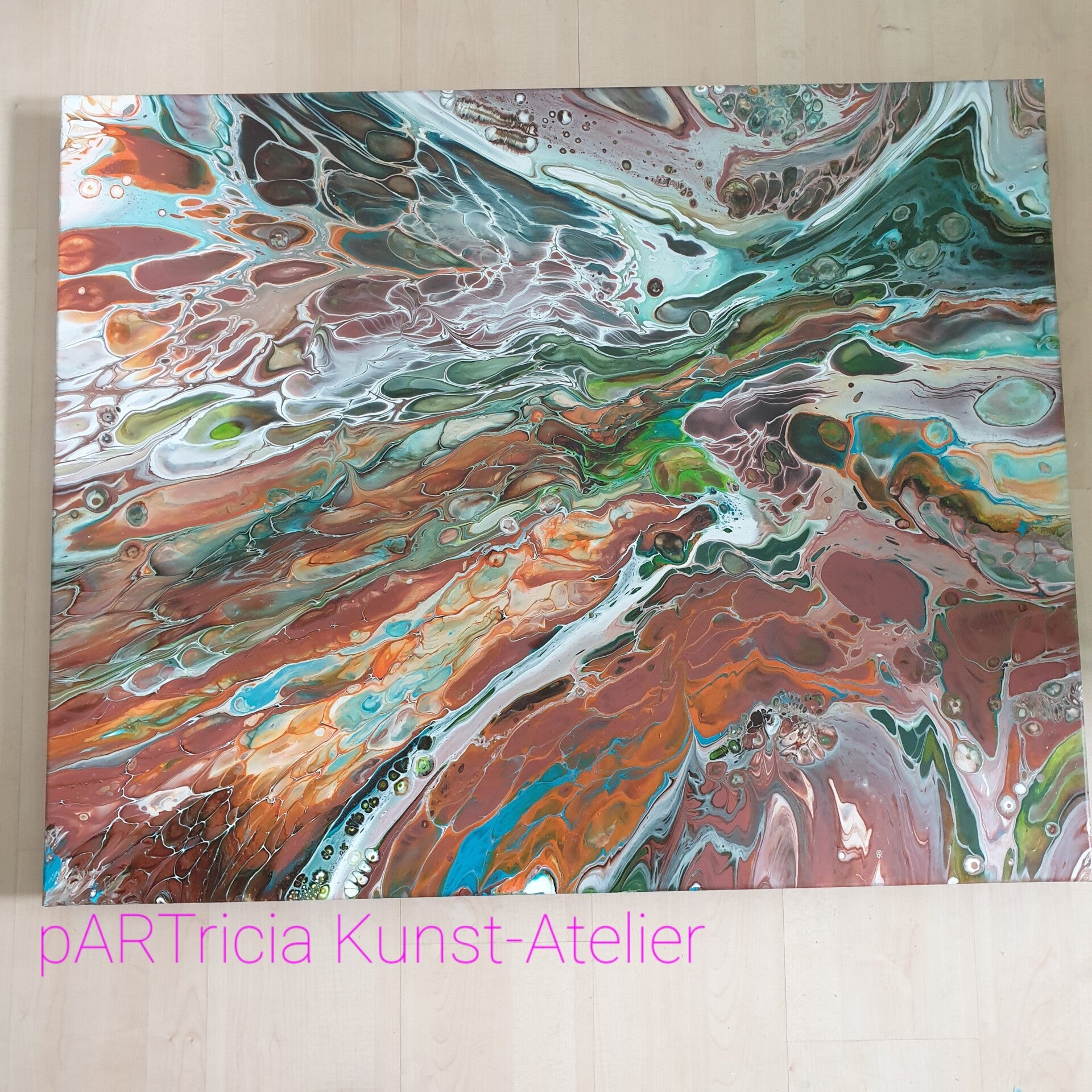 80 x 100 cm Acrylic pouring op canvas met zijde glans vernis afwerking.