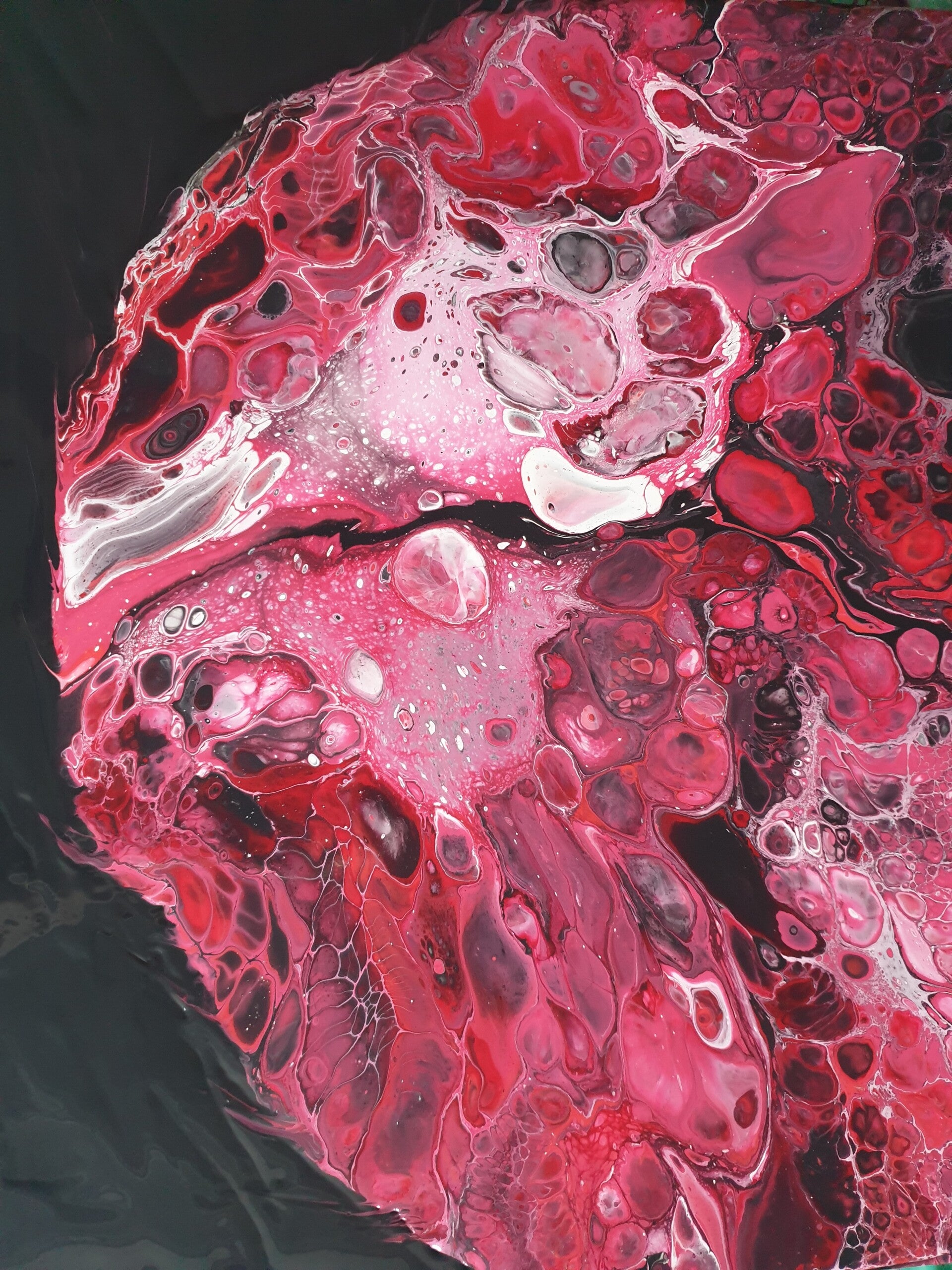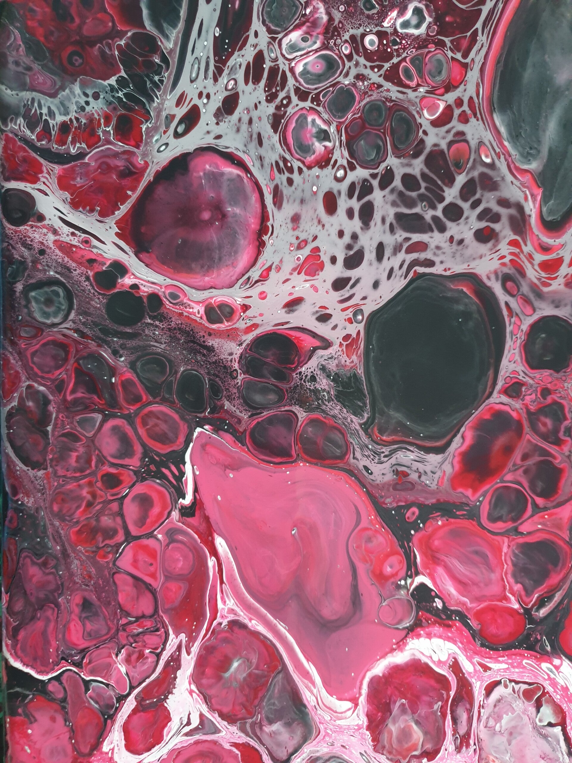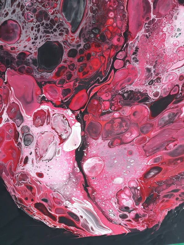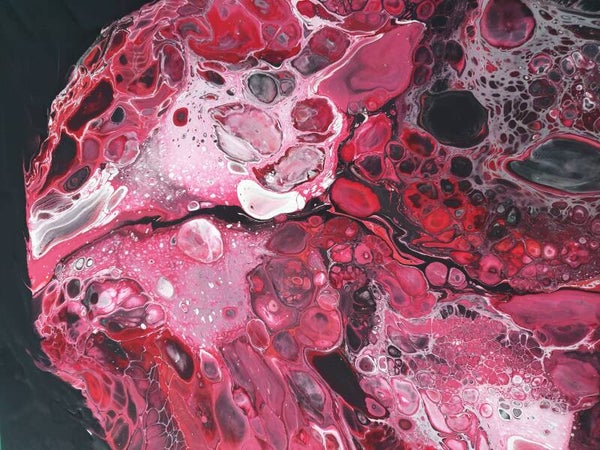 50 x 50 x 3 cm 3D Acrylic pouring op canvas met zijdeglans vernis.