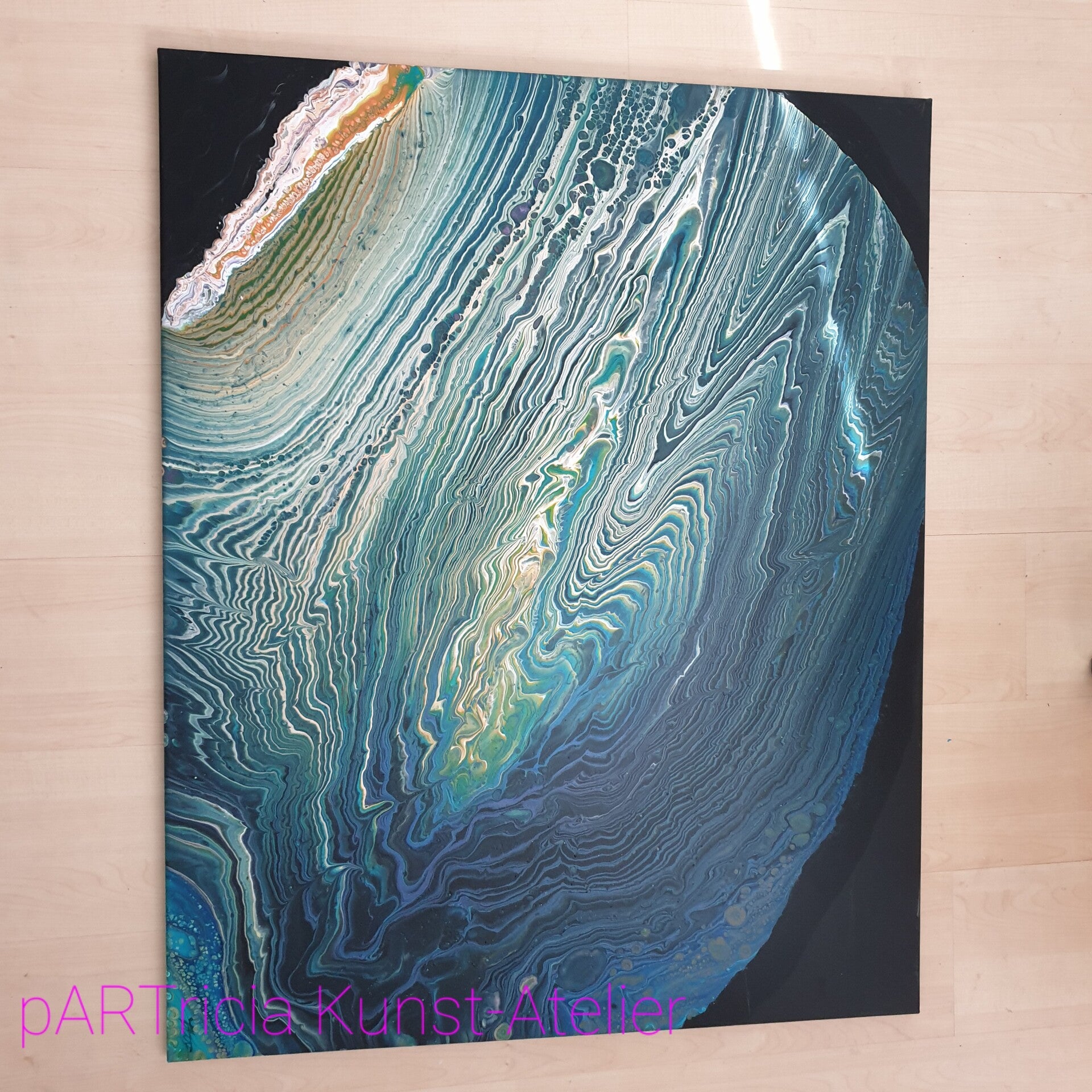 80 x 100 cm acrylic pouring op camvas met zijdeglans afwerking.