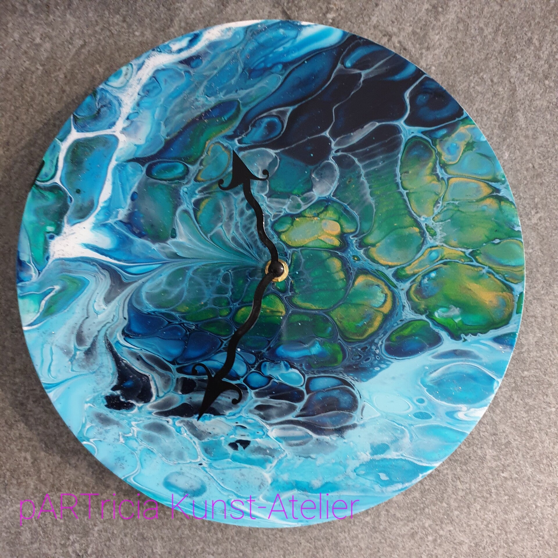 30 cm diameter MDF met acrylic pouring en epoxy (kunsthars) afwerkimg. Imcl. quarz uurwerk en fantasy wijzers. (excl. batterij AAA)