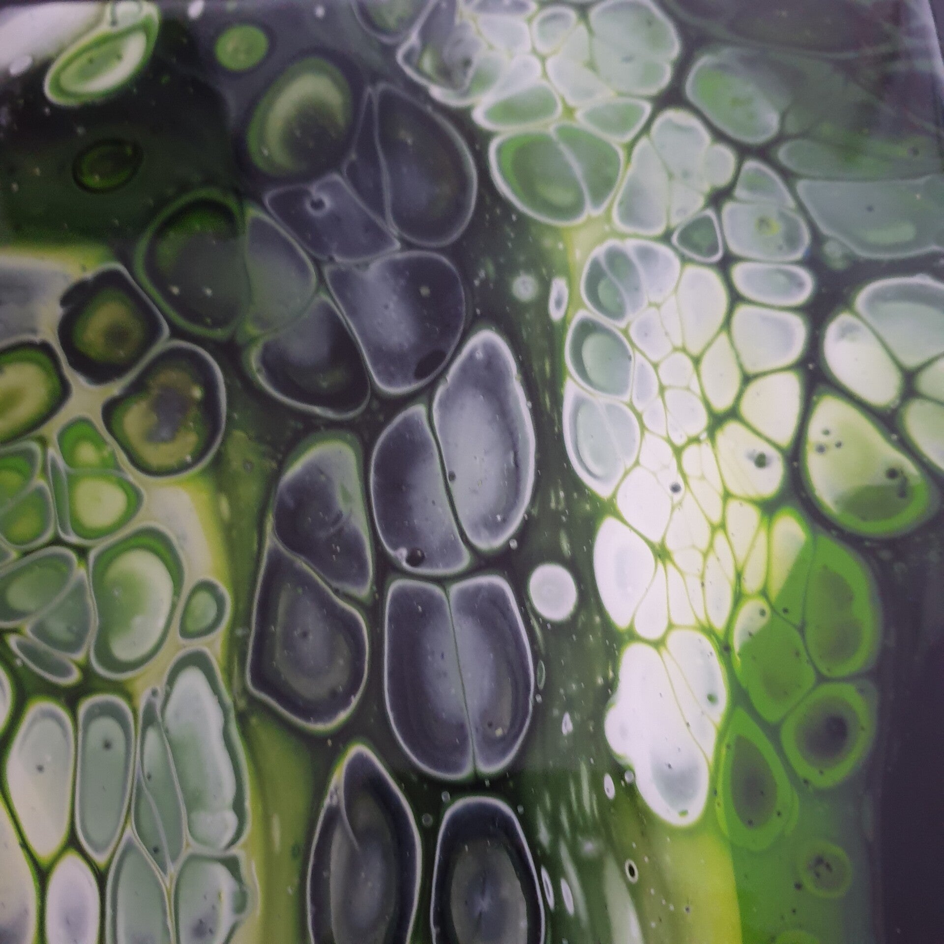 15 x 15 cm tegel met acrylic pouring en epoxy afwerking.