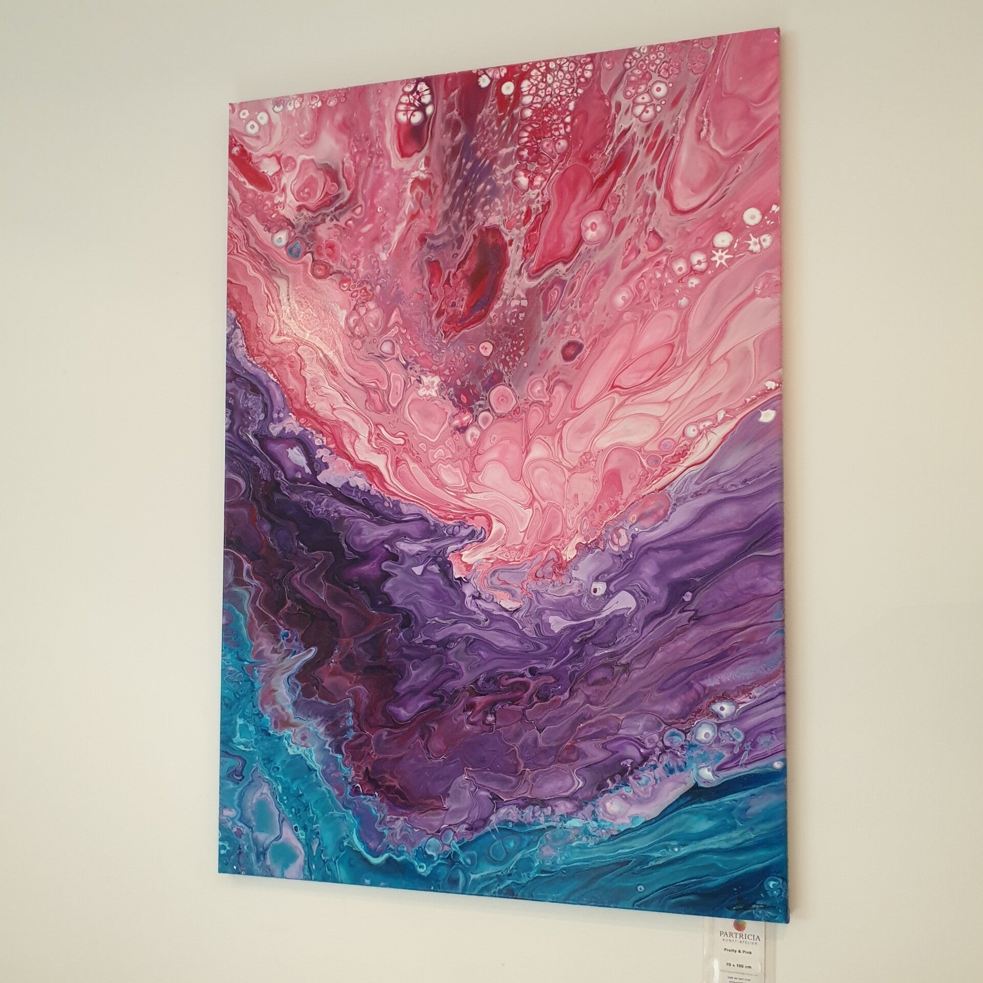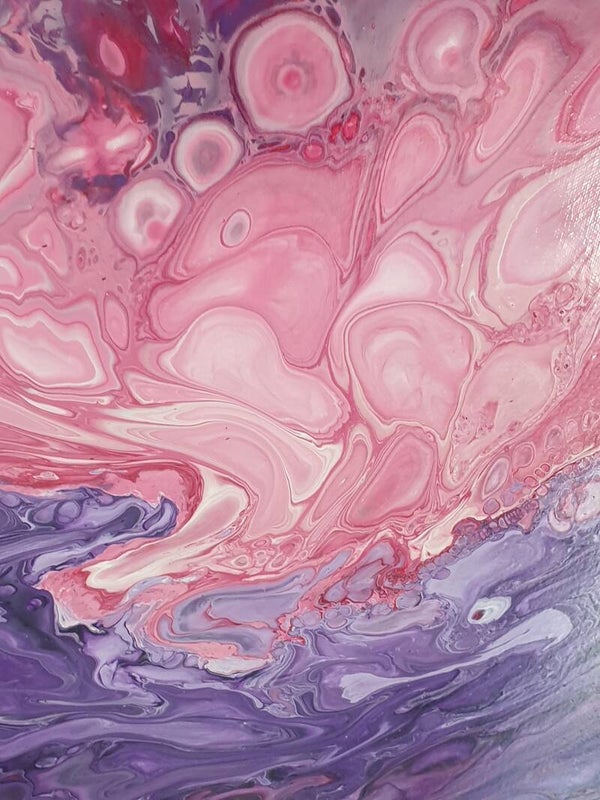 70 x 100 cm acrylic pouring met satijn glans vernis.