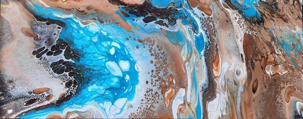 100 x 40 cm acrylic pouring op canvas met satijn glans vernis